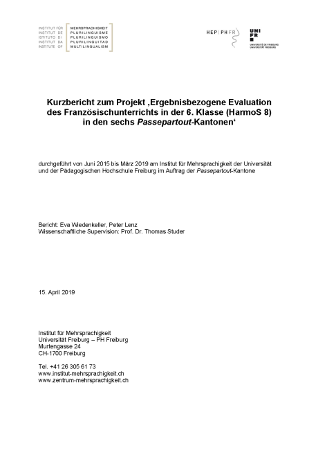 Kurzbericht zum Projekt ‚Ergebnisbezogene Evaluation des Französischunterrichts in der 6. Klasse (HarmoS 8) in den sechs Passepartout-Kantonen‘